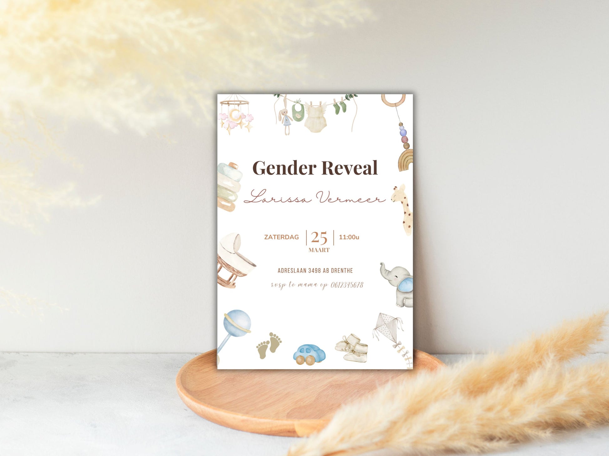 Wil jij je babyshower en gender reveal op een originele en stijlvolle manier aankondigen? Kies dan voor onze digitale uitnodiging in boho thema helemaal in de sfeer van het grote moment. Binnen enkele klikken heb je een persoonlijke, feestelijke uitnodiging klaar om te versturen naar al je dierbaren. Perfect voor babyshowers vol gezelligheid, spelletjes en natuurlijk dé onthulling: wordt het een jongen of een meisje? Laat de voorpret beginnen met een uitnodiging die net zo speciaal is als de gelegenheid zelf.