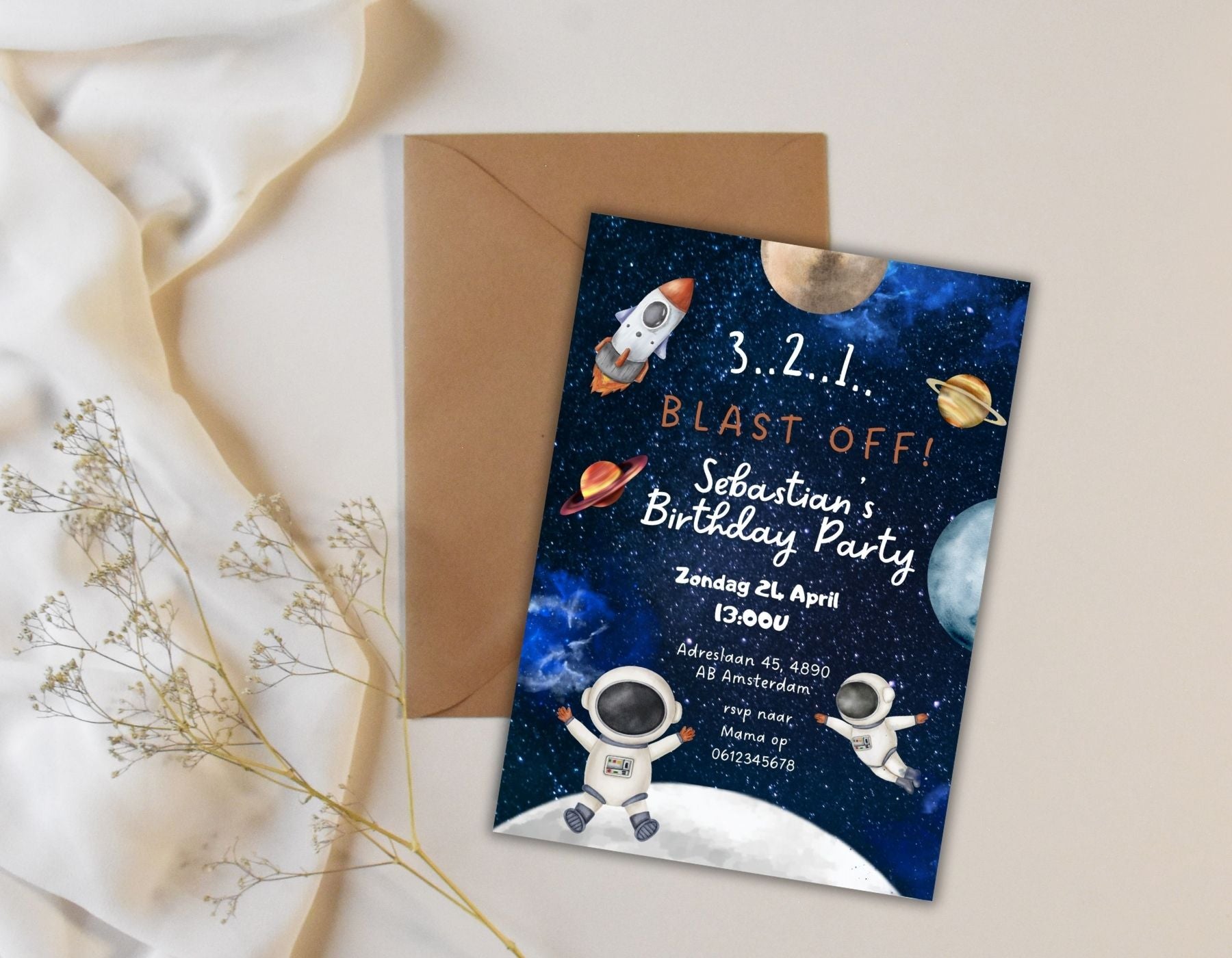 Perfect voor kinderen die dol zijn op de ruimte, wetenschap of alles wat vliegt. Ideaal voor zowel jongens als meisjes. Combineer het met een ruimtefeest en je hebt een thema waar kinderen van dromen. Start de aftelling, bewerk je uitnodiging en lanceer het feest vandaag nog!