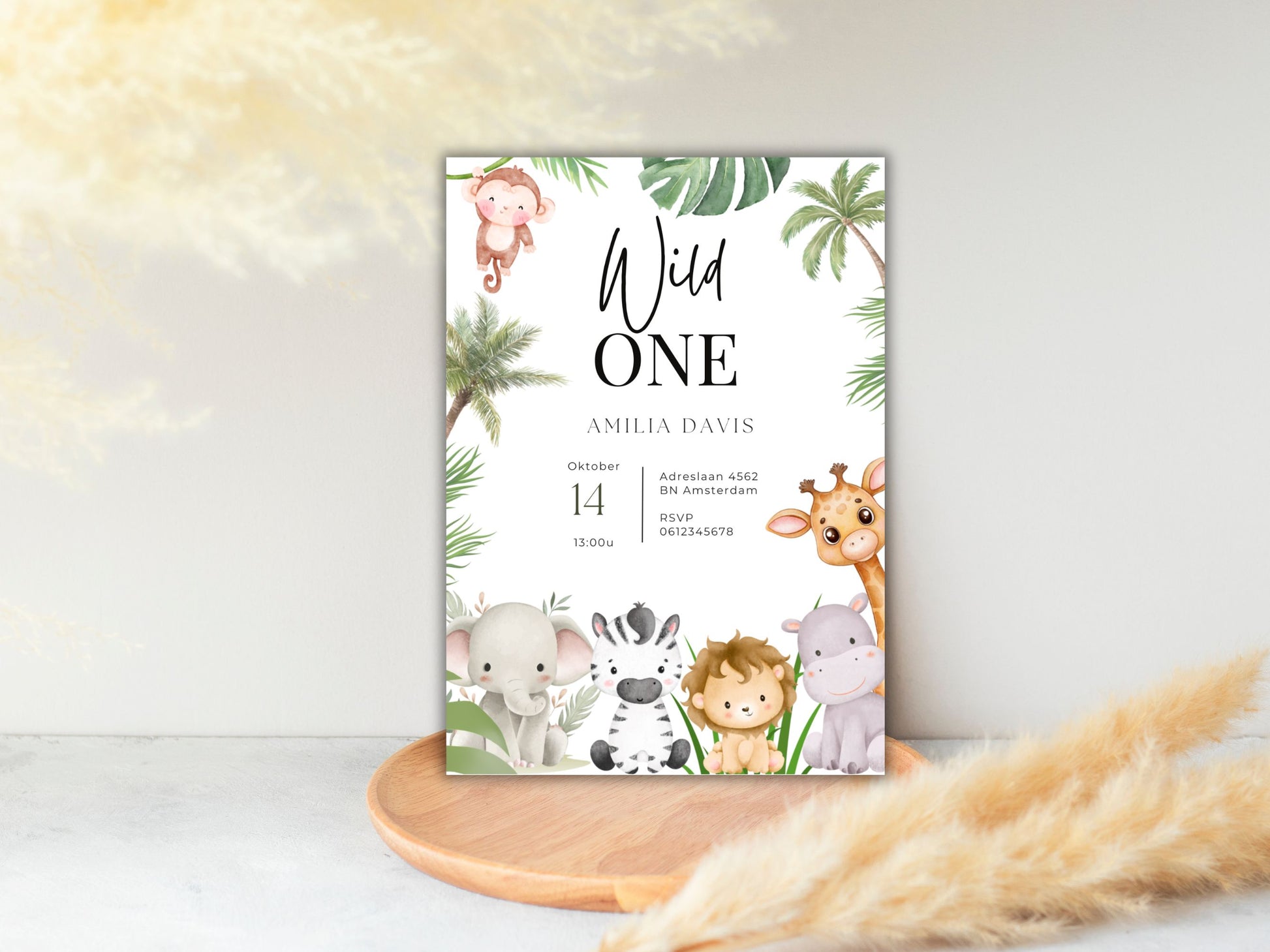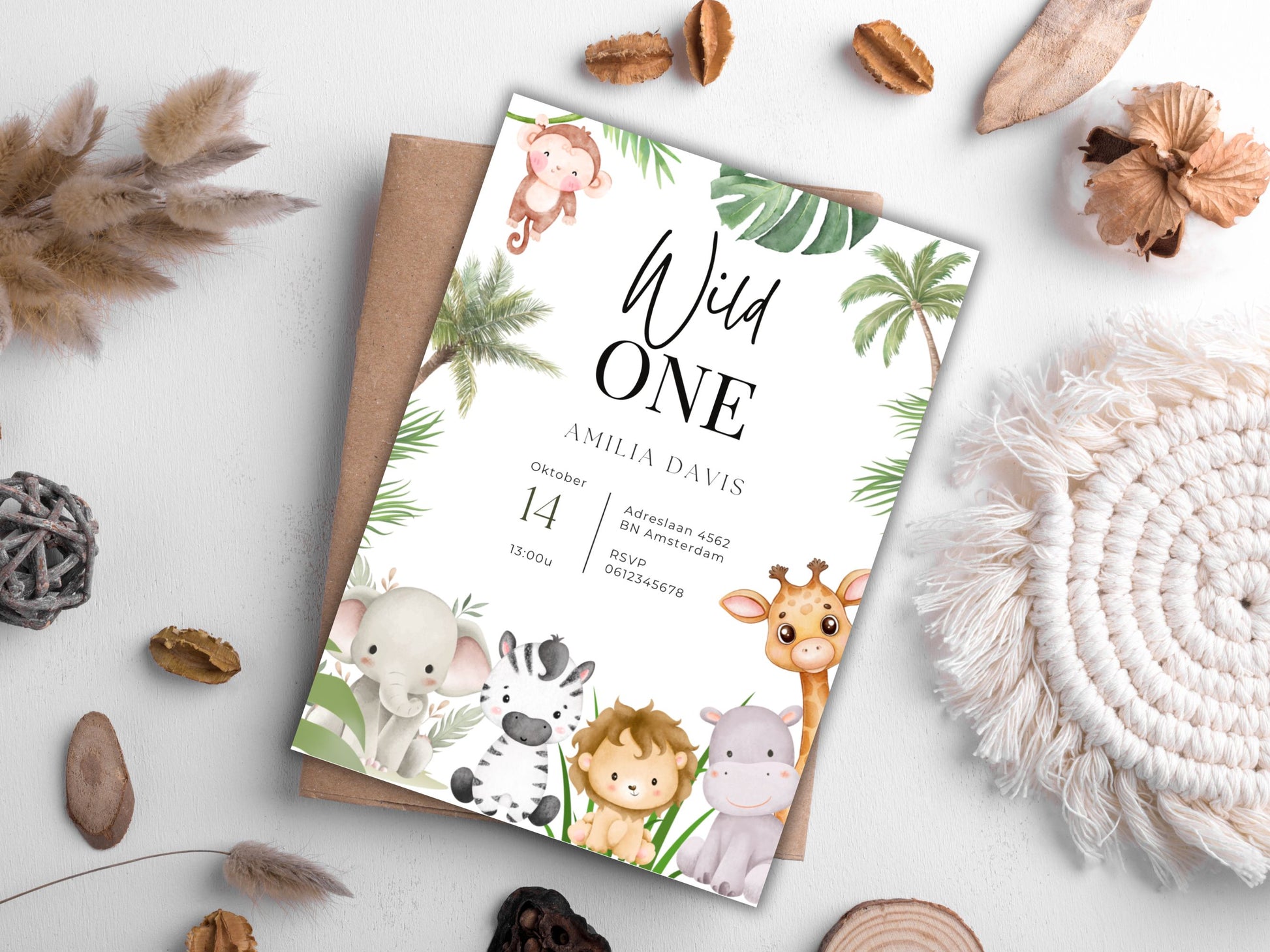 Een verjaardag is een bijzondere dag en dat mag gezien worden vanaf de uitnodiging. Met deze digitale safari uitnodiging kies je voor een stijlvol ontwerp waarin avontuur en elegantie samenkomen. Denk aan speelse dieren, subtiele details en een warme uitstraling die perfect past bij een feest vol herinneringen.