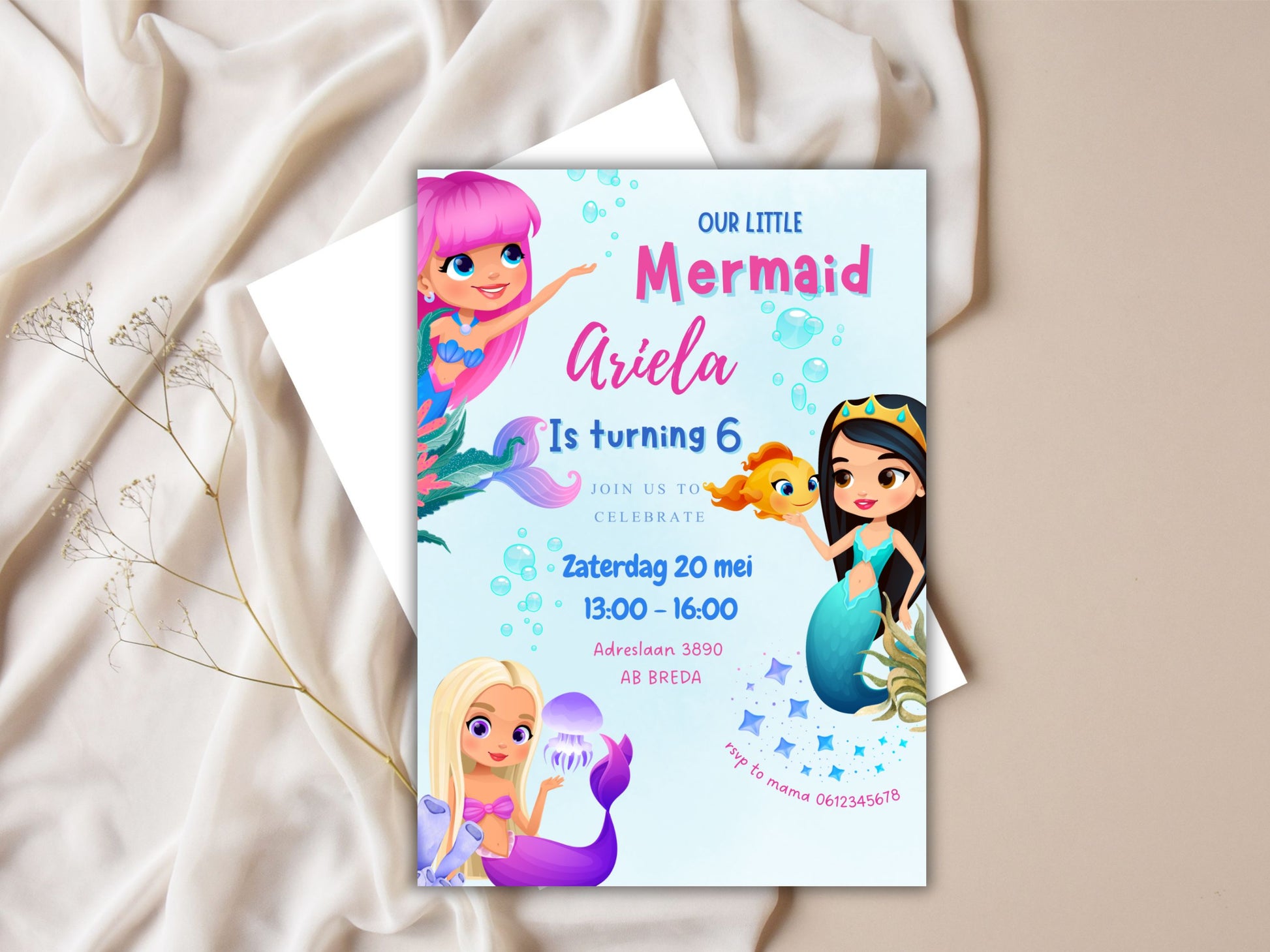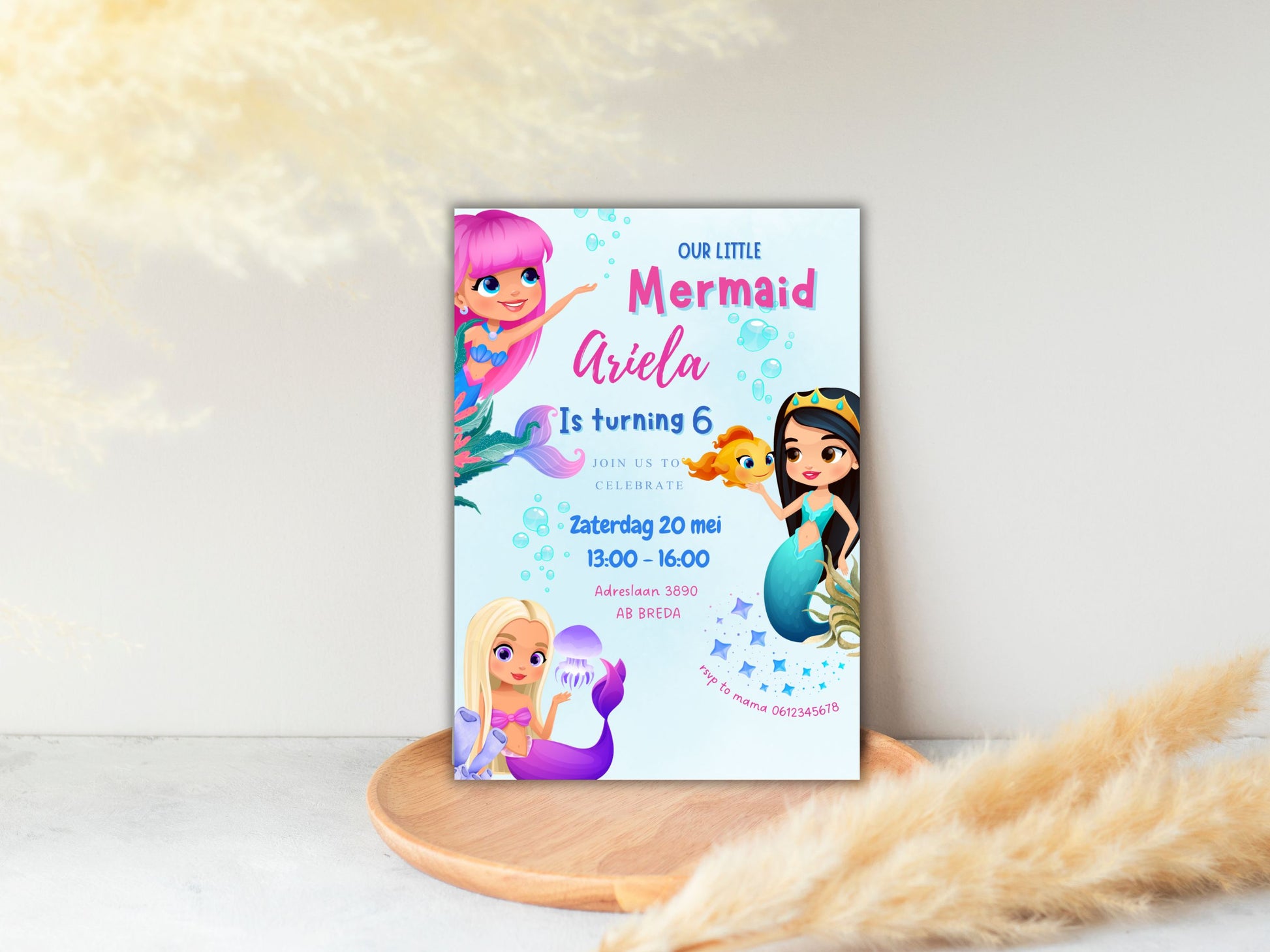 Laat jouw zeemeerminfeest beginnen met een uitnodiging die net zo sprankelend is als de jarige zelf!
