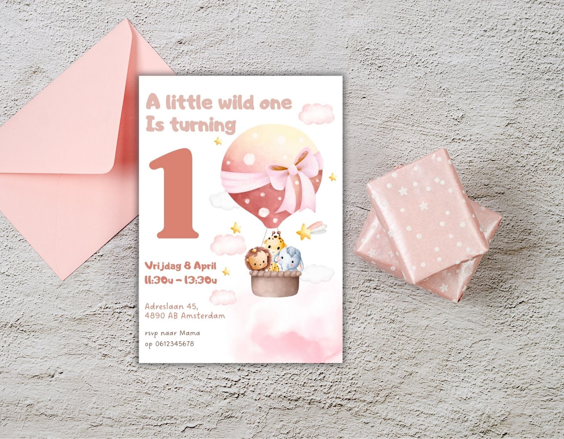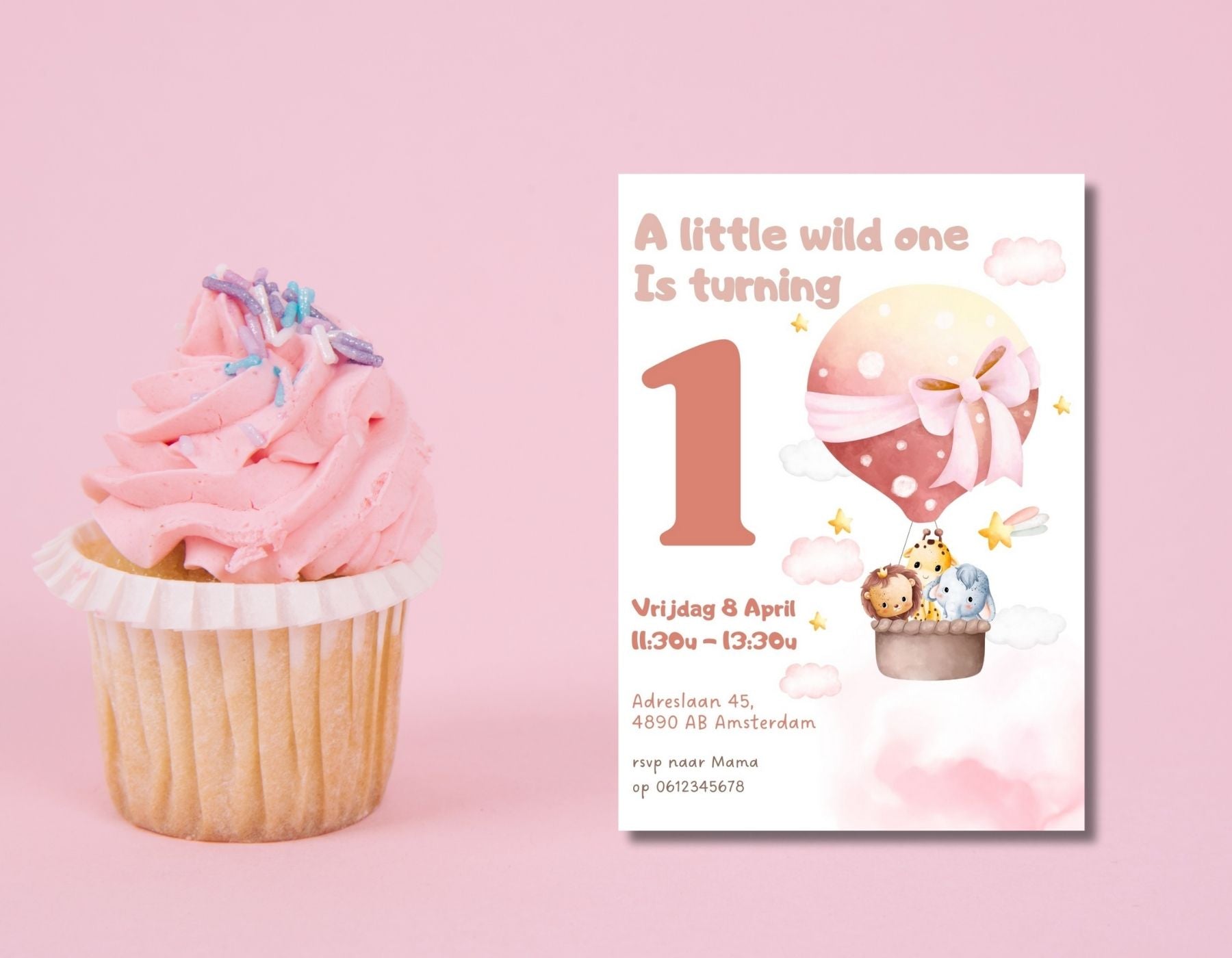 Het zachte kleurenpalet in roze tinten maakt het perfect voor een meisjesfeestje. Of je nu een verjaardagsfeestje in de achtertuin, dierenpark of thuis organiseert deze uitnodiging maakt het extra bijzonder.
