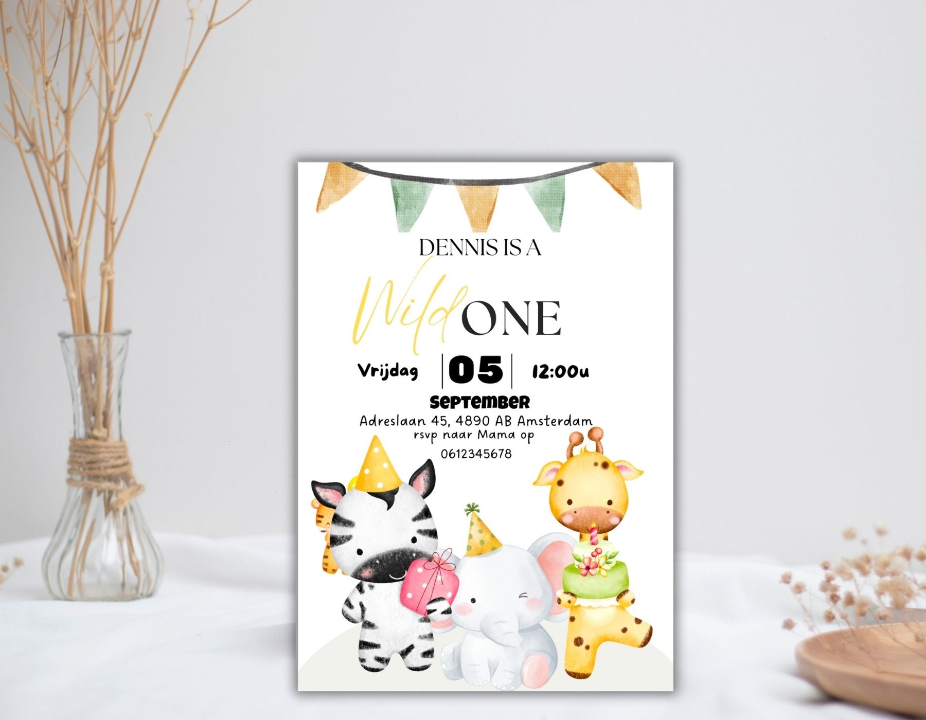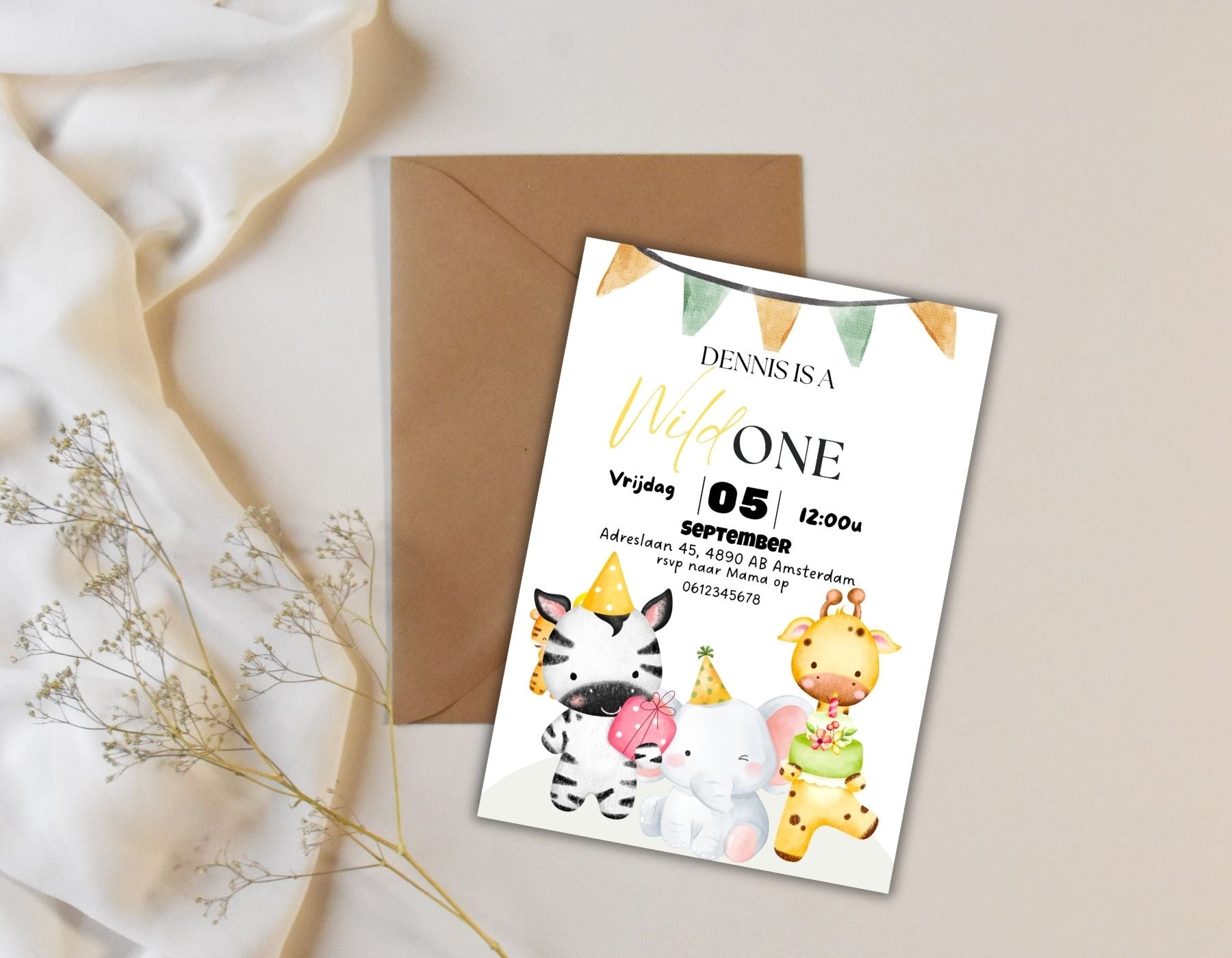Start jullie “Wild One” feestje met een uitnodiging die net zo speels is als de jarige zelf!